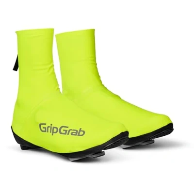 Successors to the famous GripGrab RaceAqua – The PACR waterproof cycling overshoes feature improved durability, a taller cuff and an overhauled construction for better rain protection and fit Tight Aerodynamic Fit – Designed for slim road bike shoes (LOOK, SPD-SL, Speedplay), these thin, windproof shoe covers are made for road cycling shoes only; Not for MTB shoes or trainers Windproof and Waterproof – The GripGrab PACR road cycling shoe covers protect your feet and shoes from rain, wind, and dirt when you cycle in spring, summer, and autumn Rear Zip – The robust and reliable YKK-zipper at the rear of these waterproof shoe covers makes it easier to put them on and off; It is sealed for protection against rain Reflective Details – Increasing your visibility in traffic, we have included reflective details at the rear of the cycle overshoes; Choose the yellow hi-vis version to stand out even more