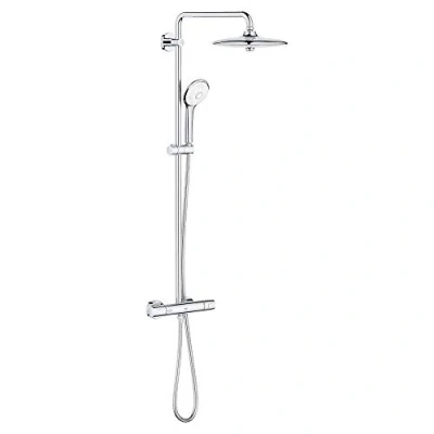 System includes GROHE CoolTouch thermostatic control, shower head, shower arm, bar with hand-shower bracket, hand shower and metal hose GROHE CoolTouch thermostat eliminates any risk of scalding Large 10-inch Euphoria 260 Shower head has an innovative center dial to easily switch between 3 sprays: Jet, Rain and SmartRain Hand shower offers 3 indulgent spray functions: Rain, Massage and SmartRain, Weight: 16.76 pounds, Manufacturer: GROHE