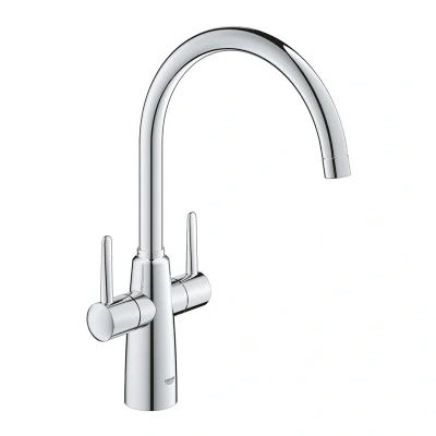 GROHE Ambi QuickFix Two Handle Kitchen Sink Mixer Tap (High C Spout, 0/150/360 Adjustable Swivel Area, 1/2 Inch Tails, Minimum Recommended Pressure 0.4 Bar), Size 377 mm, Chrome, 30189000