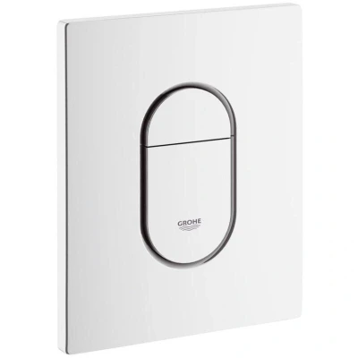 General description The Grohe Arena Cosmopolitan Flush plate in alpine white (38844SH0) is designed for both dual flush and start & stop actuation, providing an efficient and stylish solution for your bathroom needs. Technical specifications Material: ABS Colour: Alpine white Length: 15.6 cm Width: 19.7 cm Weight: 700 g Flush system: Dual flush Key shape: Oval Manufacturer warranty: 5 years Compatibility and accessories For use with Rapid SL 1.13 m with GD 2 cistern For use with Rapid SLX (shaft 66 791 000 required) Frame compatibility: Grohe cistern Other information Features GROHE StarLight finish Incorporates GROHE EcoJoy technology for reduced water consumption and optimal flow Designed for vertical installation Compatible with pneumatic drop valve AV1