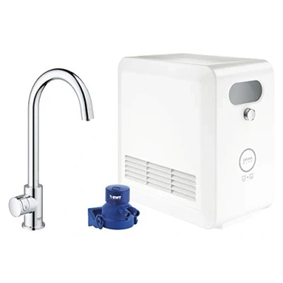 GROHE Blue Professional Mono Kit Pillar Tap for Filtered, Chilled and Sparkling Water, with Bluetooth Wifi High Swivel C Spout, Chrome Finish Includes Cooler Unit 31302002