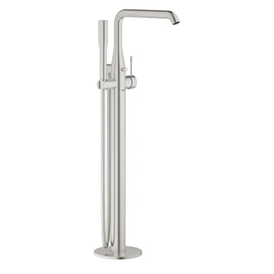 GROHE Essence Floor Mounted Bath Mixer with Euphoria Cosmopolitan Stick Hand Shower An Eco Friendly Single Lever Tap Adjustable Swivel Range German Engineered, Stainless Steel 23491DC1
