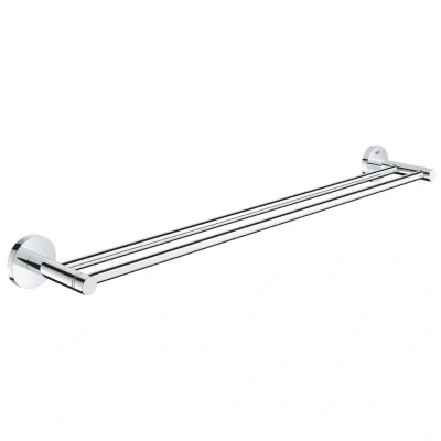 GROHE Essentials Bathroom Double Towel Rail Metal 654 mm (Useable Length 600 mm) Concealed Fastening Including Screws and Dowels Durable Sparkling Sheen Chrome 40802001