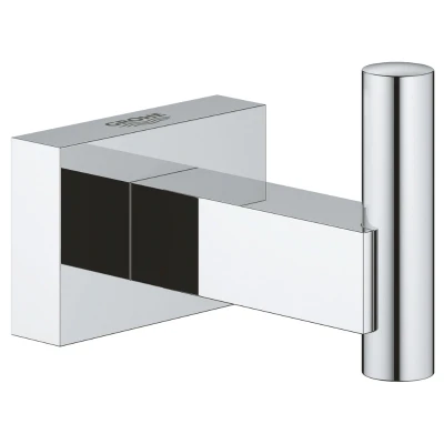 GROHE Essentials Cube Robe Hook Bathroom Wall Mounted Shower Towel Hanger (Metal, Concealed Fastening, Including Screws and Dowels, Durable Sparkling Sheen), Suitable for Gluing, Chrome, 40511001