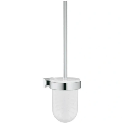 ManoManoGeneral description The Grohe Essentials Cube Toilet brush set combines functionality with a sleek design, featuring a durable chrome finish that enhances any bathroom decor. Technical specifications Material: Glass / Metal Type of installation: Wall mounted Weight: 1.36 kg Finish: GROHE StarLight chrome Product range: Essentials Cube Colour: Chrome