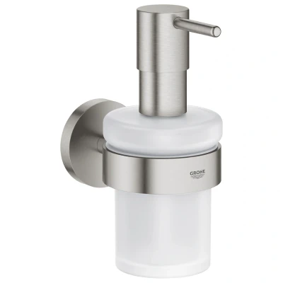 Grohe Essentials Soap Dispenser with Holder - Supersteel Creating a luxurious and stylish bathroom is now simpler than ever. All you have to do is fit a complementary selection of our superbly crafted GROHE Essentials accessories such as this holder with soap dispenser in a chic stainless steel-look. The holder with concealed fastenings has a durable, easy-care GROHE StarLight finish that will look pristine for years and it’s also easy to fit – just follow the clear step-by-step instructions. GROHE Essentials accessories – precision craftsmanship, highest quality materials and design that lasts. An elegant and handy finishing touch for bathrooms of all designs! Concealed fixings Suitable for screwing (included screws and dowels) Filing quantity 160ml Grohe StarLight finish Material : glass/metal Genuine brand new Grohe product, covered by a Grohe manufacturer's guarantee.