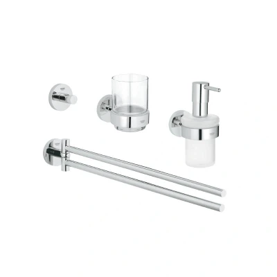 GROHE Essentials New 4 in 1 Master Bathroom Accessories Set Chrome 40846001