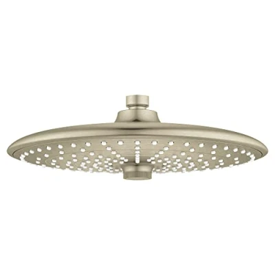 THREE SPRAY FUNCTIONS: Features rotating centre dial to easily alternate between three spray functions: gentle 10-in Rain, refreshing 7-in SmartRain, and invigorating 5-in Jet WATER EFFICIENT: Maximum flow rate of 1.75 gallons per minute (gpm); WaterSense certified for EPA criteria, using 30% less water without sacrificing performance INCLUDES: One rainshower shower head; Dimensions 10-1/4 in x 3-3/8 in, Weight: 2.39 Pounds, Manufacturer: GROHE