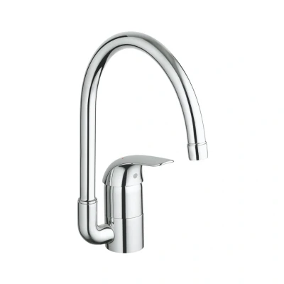 Grohe Euroeco Single Lever Sink Mixer - Chrome Form meets function in this modern kitchen mixer. This GROHE Euroeco kitchen mixer has a beautiful arced spout that makes a visual statement. The high spout lets you fill pots and tall vessels with ease, and you can set its adjustable swivel range to 0°, 150° or 360°. Controlled via the solid metal lever, inside the tap a GROHE SilkMove ceramic cartridge provides a lifetime of responsive, precise control. Save water and money with the tap’s adjustable flow rate limiter. The GROHE Easy Installation System with flexible connection hoses means installation is swift and simple. The beautiful, durable GROHE StarLight chrome finish will keep its pristine looks for years. Monobloc installation Grohe StarLight finish Grohe SilkMove 46mm ceramic cartridge Mousseur Adjustable flow rate limiter Swivel tubular spout Swivel range: 0º/150º/360º Metal lever Flexible connection hoses Rapid installation system Genuine brand new Grohe product, covered by a Grohe manufacturer's guarantee.