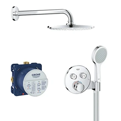 GROHE Grohtherm SmartControl Concealed Shower Set with 2 Valves and Hand Holder (Arm 286 mm, 1 Spray 21 cm Head Shower, Sprays 115 mm Hose 1.25 m, Thermostat), Chrome, 34743000