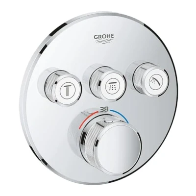 GROHE Grohtherm Smartcontrol Thermostat for Shower Or Bath, Concealed Installation, 3 Valves, Round Shape, Chrome Eco Friendly and Safety Features 29121000