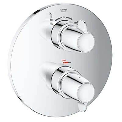 Round Thermostatic Bath Mixer Tap in Chrome - Can be combined with any bathroom With multi-function aquadimmer handle and flow regulator Temperature handle with preset safety end stop between 35 °C and 43 °C Easily converts from bath inlet to shower head Includes a thermostatic bath mixer, Weight: 2.2 Pounds, Manufacturer: Grohe