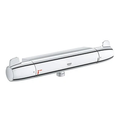 Grohe Grohtherm Special Thermostatic Shower Mixer - Chrome The Grohtherm Special thermostatic shower mixer with ergonomic metal winged handles is built to last and a pleasure to use. It is also packed with the latest GROHE technology. The GROHE CoolTouch surface of the thermostat body never gets too hot to handle while GROHE TurboStat ensures the water is the perfect temperature even if the supply fluctuates. The easy-to-use GROHE SafetyPlus fixed temperature stop can be set to limit the water temperature to a maximum of between 35˚C and 43˚C – ideal for both children and senior citizens. Wall mounted Ergonomic metal wing handles Ceramic headparts 1/2", 90° Grohe TurboStat compact cartridge with wax thermoelement Temperature scale handle with pre-adjustable safety stop between 35°C and 41°C (calibration required) Integrated mixer water shut off Shower bottom outlet 1/2" with integrated non-return valve Metal temperature safety stop Dirt strainers Without s-unions and covers Grohe FastFixation for fast exchange of non return valves in connections Grohe CoolTouch safety housing Grohe Long-Life Shine durable sparkling Sheen Genuine brand new Grohe product, covered by a Grohe manufacturer's guarantee.