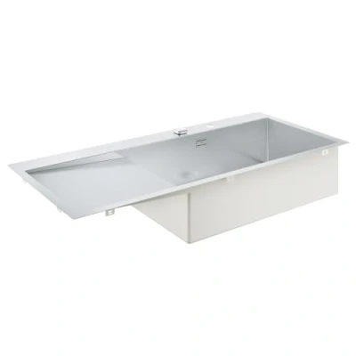 GROHE K1000 Stainless Steel Kitchen Sink with Drainer (Right Side, Top Mount or Flush Mount, Overflow and Automatic Waste Fitting, 1 Bowl 71x40 cm, Thickness 1.2 mm), 116x52 31582SD1