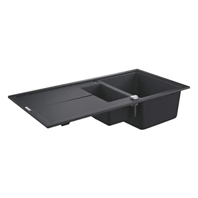 The composite material uses 80% quartz mixed with 20% acrylic resin for a super hardwearing material; Molded using a special computer-controlled casting process, it creates sinks that are extremely resistant to heat (up to 180° C), dents, scratches and stains; It also doesn’t fade under UV light, meaning it will retain its good looks as well as its premium performance; The velvety smooth pore-free surface is hygienic and easy to clean as well as 100% food-safe Minimize the sound of running water and clanging pots and pans with the GROHE Whisper technology; A special insulation on the underside of the sink reduces noise for a more peaceful kitchen Thanks to innovative manufacturing techniques, all GROHE composite sinks have a depth of at least 20cm, meaning they can handle even your largest pots and pans The GROHE QuickFix system (kit supplied) makes installing your sink quick and hassle-free with no additional equipment required; The sinks come with two pre-punched tap holes, making them fully reversible; And the clever space-saver siphon design optimises the space under the sink, leaving plenty of room for storing essentials out of sight No more plunging your hands into dirty water – this automatic waste is operated via remote control, keeping your hands clean and dry, Weight: 43.7397127808 pounds, Manufacturer: GROHE
