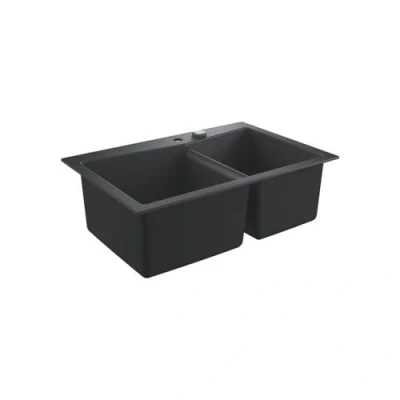 GROHE K700 Composite Double Sink, 838cm, in Granite Black, Top Mounted, with Overflow and Automatic Waste Fitting 31657AP0