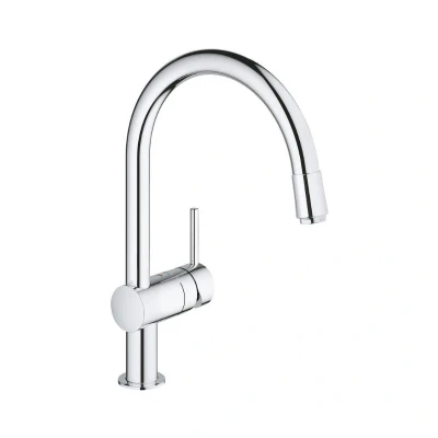 Grohe Minta Single Lever Sink Mixer - Chrome Elegant modern style meets premium performance with the Minta kitchen tap. With its high C-shaped spout that swivels through a full 360°, cleaning the sink or filling tall pots has never been easier. The tap's pull-down spray head adds to the operating radius for added cleaning convenience. With a lever that moves super smoothly thanks to the integrated GROHE SilkMove technology, the control of water volume and temperature is effortless and precise. Finished in our dazzling and scratch resistant GROHE StarLight chrome, it has a sparkle that will last for many years. With our easy installation system, you'll have it fitted in no time. A perfect kitchen upgrade! Monobloc installation Grohe StarLight finish Grohe SilkMove 46mm ceramic cartridge Pull out mousseur spout Adjustable flow rate limiter Swivel tubular spout Integrated non-return valve Protected against backflow Flexible connection hoses Rapid installation system Genuine brand new Grohe product, covered by a Grohe manufacturer's guarantee.