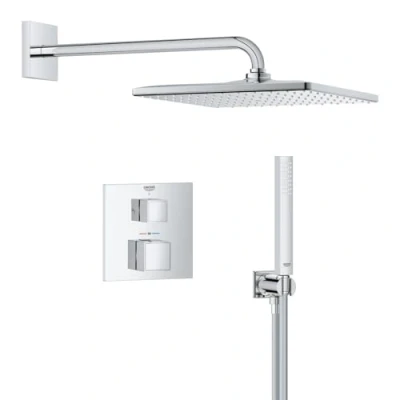 GROHE Precision Cube Concealed Shower System with 2 Outlets Thermostat (31 cm Head Mono Rain Spray, Stick Hand 1 Hose 1.5m, Square Trim), Chrome, 34879000