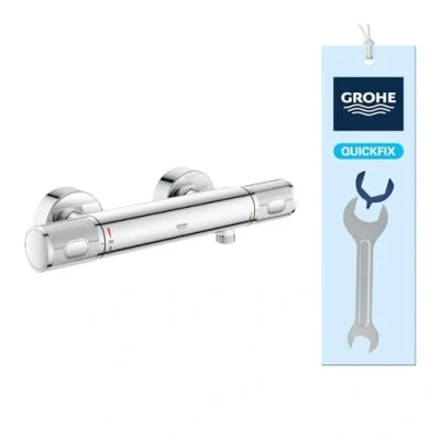 No more sudden temperature changes; With GROHE TurboStat thermostat technology, set your desired temperature then enjoy perfect comfort knowing your water won’t suddenly heat up or go cold no matter how the supply fluctuates Ensure the complete thermostat body is never hotter than the water temperature thanks to the 100% GROHE CoolTouch technology; An integrated channel inside the thermostat means that the water won’t transfer heat to the surface; So everyone – especially kids – can enjoy pure indulgence 100% free from the risk of scalding A smart, ergonomic design makes GROHE ProGrip handles comfortable and easy to use for everyone, thanks to the knurled structure, great for gripping even with wet or soapy hands Great for homes with children, this safety feature is set at 38°C, preventing you from turning up the water temperature too high; If desired, higher temperatures can be selected by pushing the button; Optional for additional safety: the easy-to-fit GROHE SafeStop Plus limiter ensures that the temperature does not exceed 43°C GROHE Water Saving technology reduces water consumption by up to 50% without compromising on performance; Whenever you turn on your tap, you will enjoy a full jet of water while saving money nonetheless Go green in the bathroom when you cut your water use in half; GROHE EcoButton technology offers you a full flow when you need it at the push of a button – to fill the tub in a hurry, for example; But standard operation reduces water consumption by up to 50% – saving on bills and reducing your carbon footprint without compromising on comfort 5 Year Manufacturer's Warranty, Weight: 4.73112014252 pounds, Manufacturer: GROHE