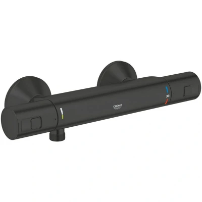 GROHE Precision Start Exposed Thermostatic Shower Mixer (Wall Mounted, Water Saving, Safety Button at 38C, Compact Cartridge with Wax Thermoelement, QuickSpanner Included), Matt Black, 345942430