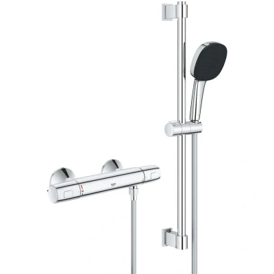 ManoManoPrecision Trend Thermostatic Shower Set with 3-Jet Hand Shower and 600 mm Bar, Chrome (G34237003) This complete Precision Trend Shower Set (G34237003) combines modern design, high-quality components, and advanced thermostatic technology for a precise and comfortable shower experience. The set includes a Precision Trend ½' Thermostatic Mixer (34229) and the Vitalio Comfort 110 Shower Set (26096) with a 600 mm bar and 3-jet hand shower, all finished in durable GROHE StarLight chrome. Key Features Complete thermostatic shower solution: Includes GROHE Precision Trend ½' mixer, Vitalio Comfort 110 hand shower, and 600 mm wall bar. Thermostatic performance: GROHE TurboStat® cartridge ensures a constant water temperature for reliable comfort and safety. SafeStop function: Built-in safety lock limits the maximum temperature to 38°C, preventing scalding. GROHE EcoJoy® technology: Reduces water consumption without compromising performance, promoting efficiency and sustainability. 3-spray hand