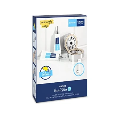 GROHE QuickGlue S1 Set with 1 Glue, 2 Discs and Alcohol Wipe for QuickFix Shower Wall Holders, Curing Time 24 Hours, 41246000