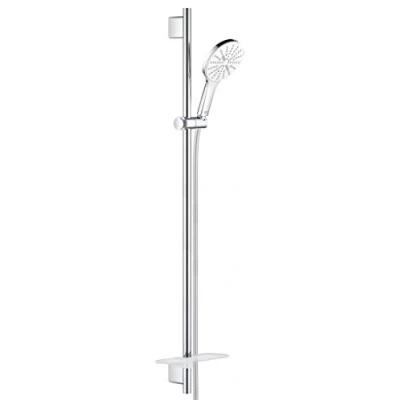 GROHE Rainshower 130 Smartactive Shower Rail Set Water Saving 3 Spray 130mm Hand with 900mm Rail, 1750mm Silverflex Hose Chrome Finish and White Plate Made in Germany 26579LS0