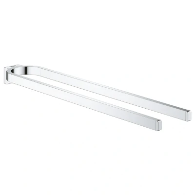 Grohe Selection Towel Holder - Non Pivotable - Chrome It’s never been easier to create a beautiful bathroom design. Just add the beautifully made GROHE Selection double towel holder, which has concealed fastening to ensure a beautiful finish. With a slim, stylish shape and crafted from the finest materials, it looks seamless in any modern bathroom. Just add your favourite towels! It also features GROHE technology. The GROHE StarLight chrome has a durable and scratch resistant finish that will sparkle for years. And with our GROHE QuickFix installation system and clear step-by-step instructions, it has never been easier to add a designer accessory that looks good and makes life in the bathroom even more enjoyable. Perfect for towels up to 360mm. GROHE Selection accessories – precision engineering, highest quality materials and a unique, timeless design. Concealed fixings Depth: 411mm (functional depth 360mm) Grohe StarLight chrome finish Two arms Material: metal Genuine brand new Grohe product, covered by a Grohe manufacturer's guarantee.
