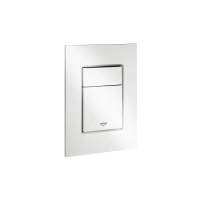 Features of the SKATE COSMOPOLITAN S FLUSH PLATE, Alpine White (37535SH0) for dual flush or start & stop actuation for pneumatic drop valve AV1 compatible with Rapid SL/GD2 1.13 m for vertical installation 130 x 172 mm made of ABS GROHE Long-Life finish GROHE Water Saving - Less water, perfect flow flush plate with magnetic holder and fixing brackets included compatible with Rapid SLX for use with Rapid SL and Uniset with GD 2 cistern please order shaft 40 911 000 (sold separately) Must be combined with the small access panel (40911000) sold separately Product range : Skate Cosmopolitan S Colour : White Material : ABS Manufacturer colouring : Alpine white Length (cm) : 17.2 Width (cm) : 13 Constructor warranty : 5 years Weight : 500 Flush system : Dual flush Key shape : Rectangle Frame compatibility : Grohe cisterns