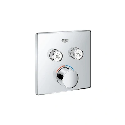 GROHE SmartControl Concealed Mixer for Shower or Bath (2 Valves, Square Shape, Set Final Installation Rapido SmartBox, Push ON OFF, Turn Volume Adjustment), Chrome, 29148000