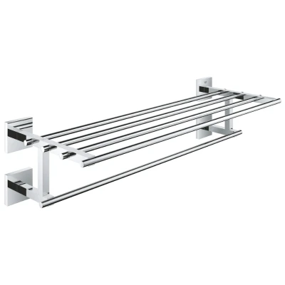 GROHE Start Cube Multi Towel Rack Bathroom Wall Mounted Shelf and Rail (Metal, Concealed Fastening, Including Screws Dowels, Durable Sparkling Sheen), Size 60 cm, Chrome, 41099000