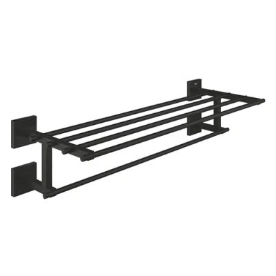 Grohe Start Cube Multi Towel Rack Bathroom Wall Mounted Shelf and Rail (Metal, Concealed Fastening, Including Screws Dowels), Size 60 cm, Matt Black, 410992430