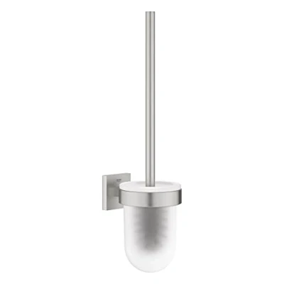 GROHE Start Cube Toilet Brush Set (Material: Glass and Metal, Wall Mounted, Durable Sparkling Sheen, with Screws Dowels), Size 399 mm, Easy to Fit QuickGlue, Stainless Steel, 40977DC0