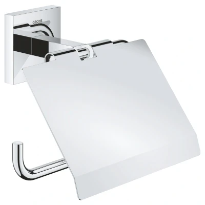 GROHE Start Cube Toilet Roll Holder with Cover (Metal, Wall Mounted, Concealed Fastening, Including Screws and Dowels), Size 111 mm, Extra Easy to Fit QuickGlue, Chrome, 41102000