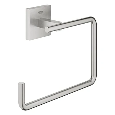 GROHE Start Cube Towel Ring Bathroom Wall Mounted Holder (Metal, Concealed Fastening, with Screws and Dowels), Size 193 mm, Extra Easy to Fit QuickGlue, Stainless Steel, 40975DC0