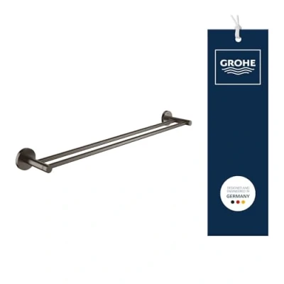 GROHE Start Double Towel Rail (Metal, Concealed Fastening, Including Screws and Dowels, Easy to Fit), Size 654 mm, Anthracite Brushed Hard Graphite, 41203AL0