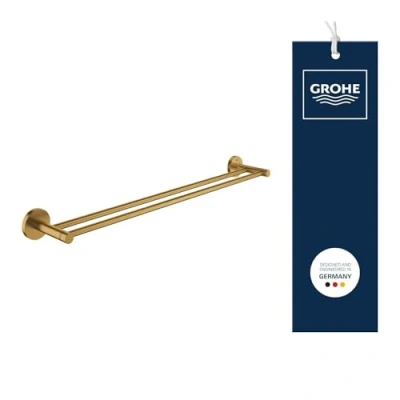 GROHE Start Double Towel Rail (Metal, Concealed Fastening, Including Screws and Dowels, Easy to Fit), Size 654 mm, Gold Brushed Cool Sunrise, 41203GN0