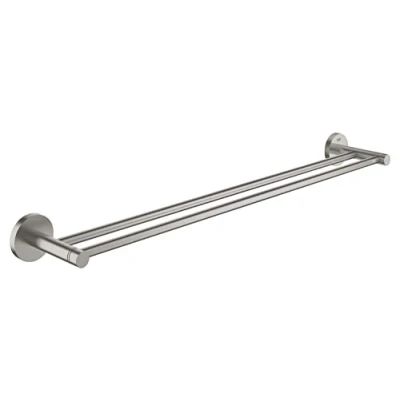 GROHE Start Double Towel Rail (Metal, Concealed Fastening, Including Screws and Dowels, Easy to Fit), Size 654 mm, Stainless Steel Look, 41203DC0