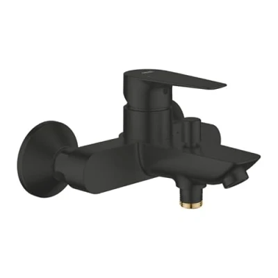EFFICIENT WATER AND ENERGY SAVING: This bath mixer is equipped with an adjustable flow rate limiter and a temperature limiter to help reduce water and energy consumption; The integrated technology ensures a consistent flow while assisting in household resource management DUAL-FUNCTION AUTOMATIC DIVERTER: The fixture features a convenient automatic diverter that allows for effortless switching between the bath spout and a hand shower; The mechanism automatically resets to the bath inlet after the water is turned off for consistent operation EASY-CLEAN MATTE BLACK FINISH: The specialized coating provides a modern surface that resists scratches and is maintained with a quick wipe of a microfiber cloth to keep the fixture looking immaculate; This robust finish is designed to maintain its uniform appearance even after years of use PRECISE TEMPERATURE CONTROL: Utilizing a 35mm ceramic cartridge, the single-lever handle provides smooth and accurate control over water volume and heat; This internal component is engineered for long-term reliability and prevents leaks over the life of the product SECURE EXPOSED WALL MOUNTING: Designed for wall-mounted installation, the mixer includes S-unions and metal wall escutcheons for a stable and clean attachment; The integrated non-return valve in the shower outlet protects the water supply by preventing backflow, Weight: 4.1116211863 Pounds, Manufacturer: GROHE