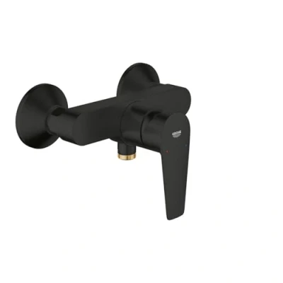SMOOTH CARTRIDGE OPERATION: Featuring a 35mm ceramic disc valve, the single-lever handle provides precise and effortless control over water volume and heat; This internal mechanism is engineered for long-term durability and ensures leak-free performance throughout daily use EASY-CLEAN MATT BLACK FINISH: The specialized coating provides a modern aesthetic that resists scratches and tarnishing in humid shower environments; A quick wipe with a microfiber cloth is all it takes to keep the surface looking immaculate, even after years of use PREVENTATIVE BACKFLOW PROTECTION: The shower outlet is fitted with an integrated non-return valve to prevent the backflow of wastewater into the clean water supply; This safety feature ensures the integrity of the plumbing system and meets standard household water safety requirements SECURE WALL-MOUNTED INSTALLATION: Designed for exposed mounting, the mixer includes S-unions and metal wall escutcheons for a stable and clean attachment to the wall; The standard connection sizing ensures compatibility with various shower hoses and plumbing systems ADJUSTABLE RESOURCE MANAGEMENT: This shower mixer is equipped with an adjustable flow rate limiter to help manage water consumption effectively; The integrated technology allows for a consistent water stream while assisting in household resource control, Weight: 2.866009406 Pounds, Manufacturer: GROHE