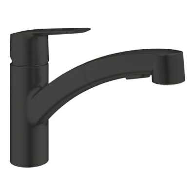 General description The Grohe START Single-Lever sink mixer with pull-out shower head in Matt black (303072431) combines modern design with functionality, making it an ideal addition to any kitchen. Technical specifications Installation type: Monobloc Finish: GROHE Long-Life Cartridge: GROHE SilkMove 35 mm ceramic cartridge Temperature limiter: Integrated Flow rate limiter: Adjustable Swivel spout: Yes, with a swivel area of 90° Inner water ways: Lead and Nickel Free Pull-out spray: Yes, with dual spray control Diverter: Laminar spray/SpeedClean shower jet Automatic return: Yes, to laminar spray Connection hoses: Flexible, 3/8' Backflow protection: Yes Weight: 3 kg Other information QuickMount included