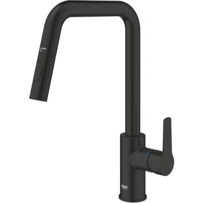 GROHE Start QuickFix Pull Out Dual Spray Kitchen Sink Mixer Tap (High U Spout, 360 Swivel Area, 28 mm Ceramic Cartridge, Tails 3/8 Inch), Easy to Fit with QuickMount, Matt Black, 306312430