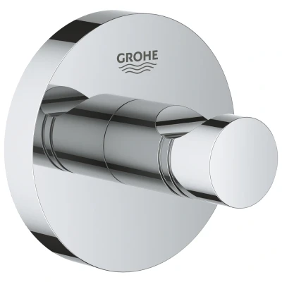 Grohe Start Robe Hook - Chrome (41173000). Part of the Grohe QuickFix Accessory Range. GROHE QuickFix – For surprisingly easy bathroom and kitchen makeovers! Never tried changing fittings yourself? With QuickFix you can do it. Save money - do it yourself! No more missing tools or instructions - QuickFix has all you need for a successful renovation. As a part Grohe's easy installation promise, QuickFix products come with a smart installation feature or tool, making every installation a breeze. *QuickGlue (41127000), not included. If you prefer how-to guides, scan the QR code and Grohe through the installation - see all the QuickVideos. Alternatively, if you prefer to look through a guide, confusing instructions are a thing of the past! Grohe's QuickGuide provides easy guidence for a smooth installation. Thanks to GROHE QuickFix anyone can achieve the perfect makeover with ease. They'll show you how easy it can be. That's a promise! Minimalist style that’s surprisingly easy to fit! With the GROHE Start robe hook it’s never been easier to install an accessory that instantly makes the bathroom more convenient and enjoyable. Crafted from the finest materials and with a timeless design the robe hook is perfect for any modern bathroom. It has concealed fastening for a fully professional finish and the durable GROHE Long-Life Shine coating, which sparkles for years. But don’t forget how easy it is to install! The hook can be screwed (screws and dowels included) or – for an even more convenient fix – glued! All you need is GROHE QuickGlue (for one mounting plate 41127000, sold separately). Just check out our QuickGuide and QuickVideo to see how easy it is to fit. Plus, if you want to create a seamless bathroom design with matching accessories, then don't forget the complementary shelf 530mm, double towel bar, double towel rail, 600mm towel rail, 800mm towel rail, towel ring, glass with holder, soap dish with holder, soap dispenser with holder, spare toilet paper holder, toilet paper holder, toilet paper holder with cover, and toilet brush set. GROHE Start – elegant designer accessories that boost your bathroom style and convenience! Material: metal. Concealed fastening. GROHE Long-Life finish. Suitable for screwing (including screws and dowels) or gluing (GROHE QuickGlue A1 41127000 sold separately). Holding force: max. 5 kg. The specified holding capacity is valid for static (slowly applied) load and intended use only. @0Lz4JxiVLSA@ @D7YN_EWHhwA@ ...