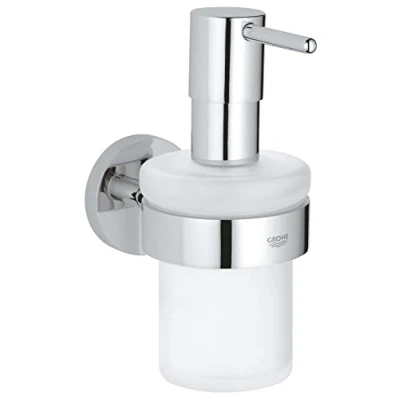 GROHE Start QuickFix Soap Dispenser with Holder (Metal and Glass, Filling Quantity 160 ml, Concealed Fastening, Including Screws Dowels, Easy to Fit QuickGlue), Chrome, 41195000