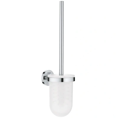 Grohe Start Toilet Brush Set - Chrome (41185000). Part of the Grohe QuickFix Accessory Range. GROHE QuickFix – For surprisingly easy bathroom and kitchen makeovers! Never tried changing fittings yourself? With QuickFix you can do it. Save money - do it yourself! No more missing tools or instructions - QuickFix has all you need for a successful renovation. As a part Grohe's easy installation promise, QuickFix products come with a smart installation feature or tool, making every installation a breeze. *QuickGlue (41127000), not included. If you prefer how-to guides, scan the QR code and Grohe through the installation - see all the QuickVideos. Alternatively, if you prefer to look through a guide, confusing instructions are a thing of the past! Grohe's QuickGuide provides easy guidence for a smooth installation. Thanks to GROHE QuickFix anyone can achieve the perfect makeover with ease. They'll show you how easy it can be. That's a promise! Stylish design and surprisingly easy to fit! With the GROHE Start toilet brush set it’s never been easier to add a designer accessory that makes bathroom life more stylish and enjoyable. Slim, elegant and engineered in Germany, it is perfect for any modern bathroom. The concealed fastening leaves a beautiful finish that looks truly professional – the durable, easy-to-clean GROHE Long-Life Shine coating that sparkles for years. But don’t forget how easy it is to install! It can be screwed to the wall (screws and dowels included) or, for an even more convenient solution, glued! All you need is GROHE QuickGlue (for one mounting plate use one syringe, 41127000, sold separately). Just check out our QuickGuide and QuickVideo to see how easy it is to fit.. A replacement brush is available (41201L00). Plus, if you want to create a seamless bathroom design with matching accessories, then don't forget the complementary shelf 530mm, double towel bar, double towel rail, 450mm towel rail, 600mm towel rail, 800mm towel rail, towel ring, glass with holder, soap dish with holder, soap dispenser with holder, spare toilet paper holder, toilet paper holder, toilet paper holder with cover and robe hook. GROHE Start – elegant designer accessories that boost your bathroom style and convenience! Material: glass / metal. Wall mounted. Concealed fastening. GROHE Long-Life finish. Suitable for screwing (including screws and dowels) or gluing (GROHE QuickGlue A1 41127000 sold separately). Holding force: max. 5 kg. The specified holding ...