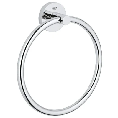 Grohe Start Towel Ring - Chrome (41174000). Part of the Grohe QuickFix Accessory Range. GROHE QuickFix – For surprisingly easy bathroom and kitchen makeovers! Never tried changing fittings yourself? With QuickFix you can do it. Save money - do it yourself! No more missing tools or instructions - QuickFix has all you need for a successful renovation. As a part Grohe's easy installation promise, QuickFix products come with a smart installation feature or tool, making every installation a breeze. *QuickGlue (41127000), not included. If you prefer how-to guides, scan the QR code and Grohe through the installation - see all the QuickVideos. Alternatively, if you prefer to look through a guide, confusing instructions are a thing of the past! Grohe's QuickGuide provides easy guidence for a smooth installation. Thanks to GROHE QuickFix anyone can achieve the perfect makeover with ease. They'll show you how easy it can be. That's a promise! Minimalist style that’s surprisingly easy to fit! With the GROHE Start towel ring it’s never been easier to install a designer accessory that makes life in the bathroom far more enjoyable. German engineered the towel ring is built to last and looks perfectly at home in any modern bathroom. The concealed fastening gives it a fully professional look and the durable GROHE Long-Life Shine finish will sparkle for years. But don’t forget how easy it is to install! The ring can be screwed (screws and dowels included) or – for an even more convenient fix – glued! All you need is GROHE QuickGlue (for one mounting plate 41127000, sold separately). Check out our QuickGuide and QuickVideo to see how easy it is to fit. Plus, if you want to create a seamless bathroom design with matching accessories, then don't forget the complementary shelf 530mm, double towel bar, 450mm towel rail, double towel rail, 600mm towel rail, 800mm towel rail, glass with holder, soap dish with holder, soap dispenser with holder, spare toilet paper holder, toilet paper holder, toilet paper holder with cover, toilet brush set and robe hook. GROHE Start – elegant designer accessories that boost your bathroom style and convenience! Material: metal. Concealed fastening. GROHE Long-Life finish. Suitable for screwing (including screws and dowels) or gluing (GROHE QuickGlue A1 41127000 sold separately). Holding force: max. 5 kg. The specified holding capacity is valid for static (slowly applied) load and intended use only. @0Lz4JxiVLSA@ @D7YN_EWHhwA@ Genui...