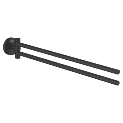 GROHE Start Towel Bar (Metal, Pivotable 2 Arms, Concealed Fastening, Including Screws and Dowels, Easy to Fit), Size 439 mm, Matt Black, 411832430
