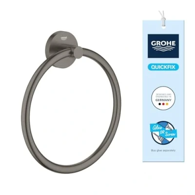 GROHE Start Towel Ring (Metal, Concealed Fastening, Including Screws and Dowels), Size 200 mm, Anthracite Brushed Hard Graphite, 41174AL0