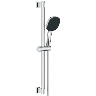 GROHE Vitalio Comfort 110 Shower Set (Square 11 cm Hand 2 Sprays: Rain & Jet, Hose 1.75 m, Rail 60 cm, Anti Limescale System), Easy to Fit with QuickGlue, Chrome, 26928001