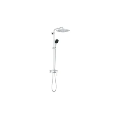 GROHE Vitalio Comfort 250, Shower Column with Single Lever Mixer Tap, Overhead 25 cm 1 Jet (Rain), Head 11 2 Jets (Rain and Massage), Hose 1.75 m, Water Saving, Chrome, 26985001